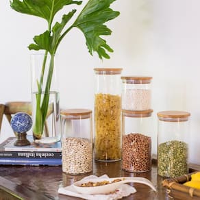 O Pote de Mantimentos Circular com Tampa de Bambu da OIKOS é perfeito para organizar e conservar seus alimentos.