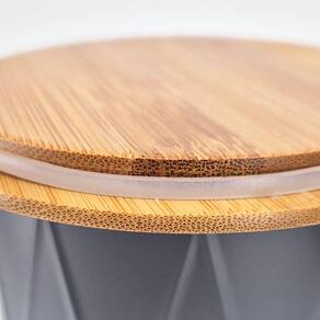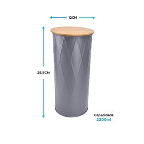 Pote de Metal com Tampa de Bambu 2 Litros Fosco Vedação Cor: Cinza Pote de Metal com Tampa de Bambu Com capacidade para 2 litros, ele é perfeito para armazenar grãos, cereais e biscoitos. Seu design fosco e a tampa de bambu não só garantem uma aparência moderna, mas também proporcionam uma vedação eficaz, mantendo seus alimentos frescos por mais tempo. Ideal para quem busca praticidade e elegância na hora de cozinhar.