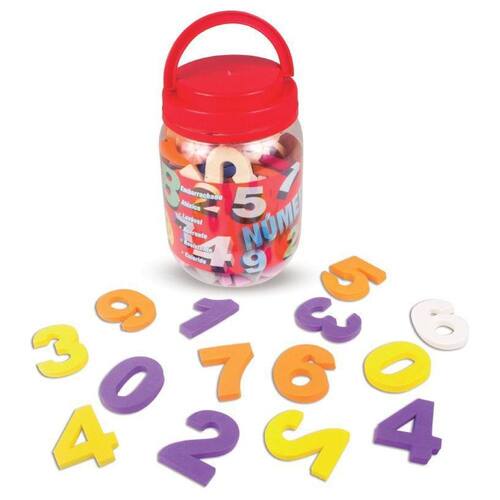 Composto por 55 peças de 5x5cm. Sendo 50 números de 0 a 9 e 5 sinais aritméticos. Idade recomendada: a partir dos 3 anos.