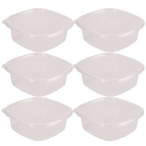 Conjunto com 6 unidades. Recipiente plástico com capacidade para 1 litro. Possui tampa translúcida para facilitar a identificação do conteúdo. É produzido em material atóxico e livre de BPA. Pode ser levado ao freezer e ao micro-ondas. Material: polipropileno Capacidade: 1 litro Comprimento: 18,1 cm / Largura: 18,1 cm / Altura: 6,6 cm