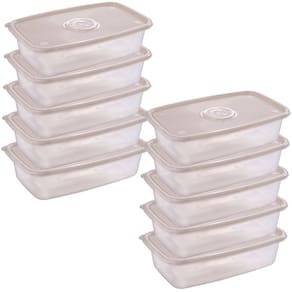 Conjunto com 10 unidades. Recipiente plástico com capacidade para 2,7 litros. Possui tampa translúcida para facilitar a identificação do conteúdo. É produzido em material atóxico e livre de BPA. Pode ser levado ao freezer e ao micro-ondas. Material: polipropileno Capacidade: 2,7 litros Comprimento: 30,5 cm / Largura: 19,6 cm / Altura: 8,1 cm