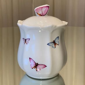 Este pote da linha Borboletas proporcionará a praticidade e beleza ao armazenar seus mantimentos e decorar sua cozinha. Cheio de charme e fabricado em porcelana, esta charmosa peça conta com muita funcionalidade e qualidade, possui alto relevo em volta de toda a peça em formato de borboletas.