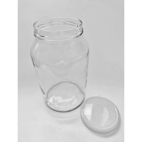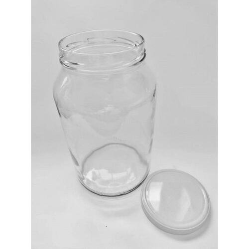 O kit contém 4 unidades de vidro de 3 litros + 4 unidades de tampa metálica 110 MM branca