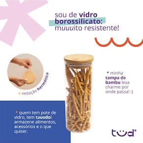 "Oii! Tüd bem? Vem saber mais sobre o pote de vidro com tampa de bambu hermético de 450ml da Tüd!