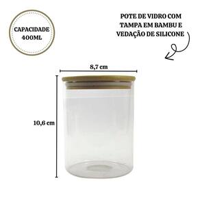 POTE DE VIDRO 400 ML COM TAMPA EM BAMBU E VEDAÇÃO DE SILICONE - BF2980.