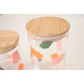 Descrição do produto Organização na cozinha é ideal não é mesmo por isso, potes organizadores de mantimentos nunca são demais. Sendo algo imprescindível para deixar seus alimentos bem conservados. Os potes de vidro com tampa de bambu hermética cumprem essa função perfeitamente. Com sua tampa hermética, o fechamento é totalmente impermeável, deixando seus alimentos conservados, frescos e protegidos da umidade, do ar e de outros fatores que podem acelerar a deteorização dos produtos. Além de ser hermética, a tampa é feita de bambu, que mantém os seus alimentos longe de fungos e bactérias, pois o bambu possui agentes fungicidas e bactericidas. Esses potes de mantimentos podem ser em qualquer ambiente que você desejar, tanto na cozinha, escritórios ou ambientes comerciais, se tornando um item extremamente versátil. Os detalhes coloridos tornam o produto uma peça decorativa também. Benefícios e características Vidro: o pote é feito de vidro transparente, facilitando a visualização do seu conteúdo e sua higienização. Tampa hermética: a tampa hermética permite uma vedação 100% impermeável. Bambu: a tampa é feita de bambu, o que proporciona durabilidade, além de proteger alimentos de fungos e bactérias, por conter agentes fungicidas e bactericidas. Decoração: o pote possui detalhes coloridos e discretos, combinando com inúmeros ambientes na sua decoração. Versatilidade: um produto super versátil, pois além de utilizar em sua cozinha, pode ser em escritórios, ambientes comerciais, ou onde você preferir. Ficha técnica Marca: mai home Modelo: brush Capacidade: 1000ml e 300ml Marca: Não Informado Ean: 7908677604947