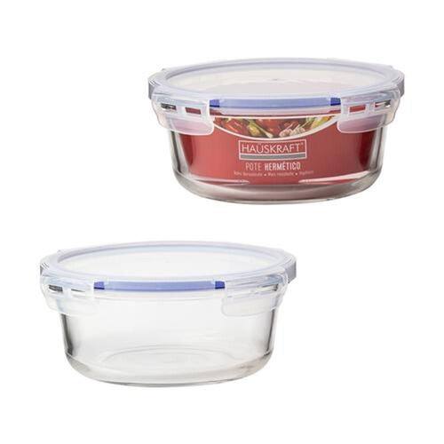 POTE DE VIDRO REDONDO COM TAMPA HERMÉTICA 580ML