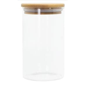 Esse é o pote de vidro hermético redondo de 1650ml para mantimentos com tampa de bambu da OIKOS.