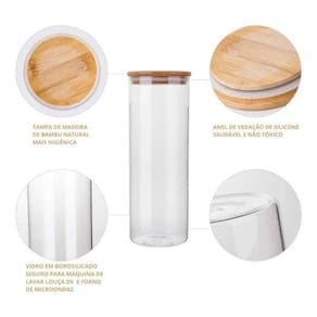 Pote De Vidro Hermético Com Tampa De Bambu Vika Natur 1650Ml