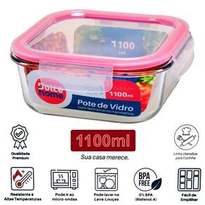 Pote de vidro perfeito para armazenar os alimentos, além de poder ser Utilizado no micro-ondas. Possui friso em silicone com abas na tampa, promovendo um fechamento hermético ideal para uma melhor conservação dos alimentos. Elegância, praticidade e beleza para sua cozinha. Ficha técnica: Material: Pote: Vidro Boro silicato Tampa: PP e Silicone Resistente Durável Capacidade: 1100ml Dimensões: 17,5cm X 6,5cm Conteúdo da embalagem: 1 Pote De Vidro Hermético 1100ml Produtos de decoração não inclusos. Imagem meramente ilustrativa.