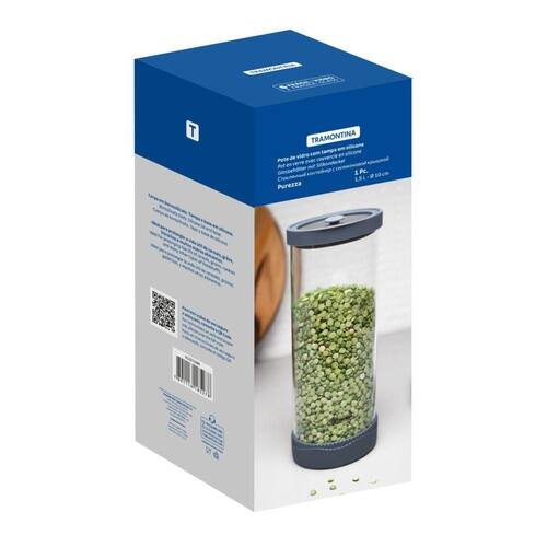 Pote De Vidro Hermético Tramontina Em Borossilicato Com Tampa 1,5 L Pote de Vidro Hermético Tramontina em Borossilicato com Tampa 1,5 L O pote de vidro hermético Tramontina em borossilicato com tampa mantêm seus alimentos secos mais frescos e por mais tempo, sendo a escolha ideal para quem busca funcionalidade, elegância, modernidade e organização na cozinha. Desenvolvido em vidro borossilicato resistente e livre de BPA, ele conta com base em silicone, aumentando a resistência contra impactos e garantindo um manuseio silencioso. Sua tampa possui uma borda em silicone e uma tampa extra que garante o fechamento hermético, protegendo os alimentos do ambiente externo e mantendo sua textura e sabor por mais tempo. Ele ainda é empilhável, permitindo que você preencha cada cantinho do armário sem perder espaços desnecessários. Seu design altamente sofisticado e estrutura compacta trazem um toque de elegância à sua cozinha. Facilite a organização e o armazenamento de cereais, biscoitos, massas e sementes, para isso, escolha os potes herméticos de vidro Tramontina!