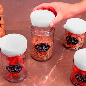 O Pote para alimento da Casambiente acompanha tampa de rosca vermelha que veda e evita que o alimento com o ambiente externo. É feito em vidro de espesso, que garante maior durabilidade para o pote. Possui design moderno que se adapta às suas necessidades na cozinha, levando uma maior organização a sua cozinha. Com o pote kitchen seus alimentos ficam longe de fungos e bactérias, além de deixar sua cozinha muito mais organizada.