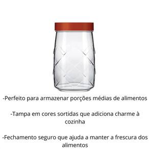 O Pote de Vidro Maracatu 1,2L com Tampa Cor é a escolha perfeita para manter sua cozinha organizada e elegante. Com capacidade de 1,2 litro, é ideal para armazenar grãos, biscoitos, café, açúcar ou outros mantimentos, preservando o frescor e o sabor por mais tempo. Produzido em vidro transparente de alta qualidade, permite fácil visualização do conteúdo, enquanto a tampa colorida e resistente garante um fechamento seguro contra umidade e odores. Versátil e durável, o pote Maracatu alia praticidade, funcionalidade e estilo, transformando a rotina de organização da sua despensa ou bancada. Especificações: - Marca: Nadir; - Modelo: 2303; - Capacidade: 1200ml; - Diâmetro: 8,5 cm; - Dimensões: 10,5 x 10,5 x 17,5 cm; - Material: Vidro, Plástico; - Aplicação: Armazenar alimentos; - Recomendações: Guardar sempre fechado com a tampa para manter os alimentos frescos e protegidos de insetos; - : 3 meses 90 dias . Conteúdo da embalagem: -01 Pote de Vidro Maracatu 1,2L com Tampa Cor .