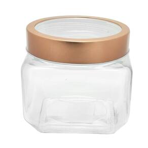 Pote De Vidro Quadrado Com Tampa Transparente Cobre 800Ml
