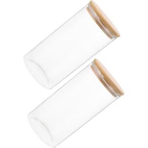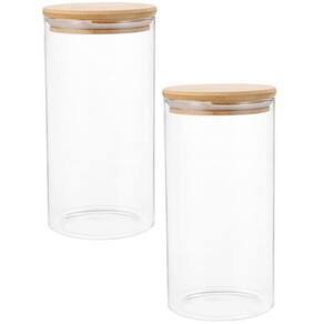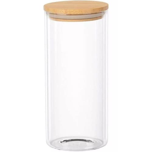• 1 Pote de Vidro Tubular com Tampa de Bambu 1,7L 27,5x10cm