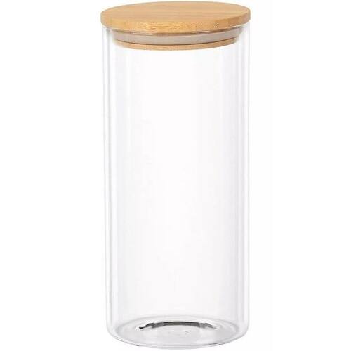 Pote de Vidro Tubular com Tampa de Bambu 1L 10x17cm Transparente -