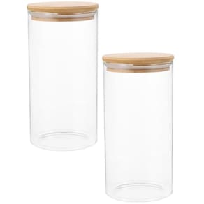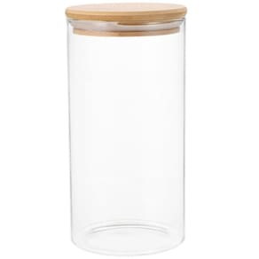 • 1 Pote de Vidro Tubular com Tampa de Bambu 1L 10x17cm