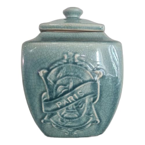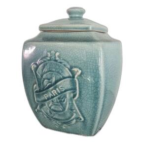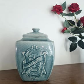 Pote decorativo cerâmica azul retrô paris importado 27 x 34 Pote decorativo em cerâmica retrô paris 27 x 34