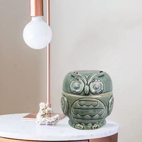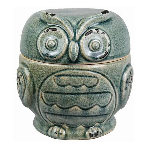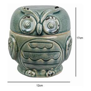 Pote decorativo cerâmica coruja retrô verde 17 x 12 Pote decorativo em cerâmica coruja