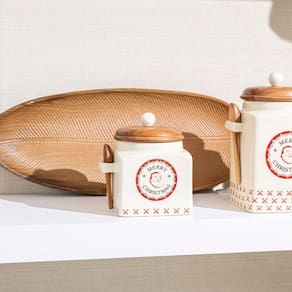 Pote Decorativo Copa E Cia Versailles Natalino Em Cerâmica Artesanal Merry Christmas - 13 X 15 Cm Pote Decorativo Copa e Cia Versailles Natalino em Cerâmica Artesanal Merry Christmas - 13 X 15 cm - Características Gerais do Produto: - Composição: Madeira; Cerâmica - Detalhes: Peça Vendida de Forma Individual.; Design Exclusivo Copa&Cia.; Produzido na Índia.; Pintadas a mão e texturizadas.; As cores podem sofrer pequenas alterações de cor, variando de monitor para monitor.; Por se tratar de um produto artesanal; pode sofrer alterações no design(formato e tonalidade); Os objetos que ambientam as fotos não acompanham o produto.; As fotos produzidas são apenas como sugestão de uso com as demais peças da coleção.; Isso torna cada peça única e faz parte do charme da cerâmica artesanal. - Cuidados: Lavar com Detergente Neutro e Esponja Macia.; Não Deixar de Molho.; Armazenar em local seco e arejado.; Não podem ser colocados em lava-louças.; Evitar contato com objetos cortantes ou superaquecidos.; Não utilizar solventes, abrasivos ou alvejantes.; Não podem ser introduzidos em micro-ondas e forno.; Evite choques-térmicos e impactos. - Dimensões (cm): Linha possui variação em tamanhos e formas; 13 X 13 cm; 13 X 15 cm; 13 X 18 cm; 13 X 21 cm; 13 X 26 cm Acompanha o produto: - 1 Peça de Pote Decorativo com Tampa Garantia: - 7 dias/30 dias contra defeito de fabricação