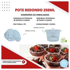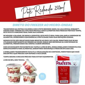 Desfrute da excelência no armazenamento com o pote redondo 250ml da loja oficial embanet: seu parceiro essencial na preservação de alimentos frescos Projetado para tornar sua rotina culinária mais eficiente e prática, este pote é a escolha ideal para manter seus alimentos frescos e saborosos por mais tempo. Versatilidade sem limites: de mousse a saladas, de sopas a sobremesas, este pote é perfeito para uma ampla gama de alimentos, oferecendo conveniência e flexibilidade para suas necessidades culinárias diárias. Durabilidade excepcional: nossos potes são construídos para resistir ao frio e ao calor, permitindo que sejam do freezer ao micro-ondas sem deformar ou comprometer a qualidade dos alimentos, garantindo assim sua frescura e sabor. Qualidade inigualável: com um fechamento seguro da tampa e livre de bpa, nossa embalagem é desenvolvida especificamente para alimentos, assegurando segurança e tranquilidade em cada uso. Facilidade de uso: a embalagem transparente facilita a identificação do conteúdo, permitindo que você localize rapidamente o que precisa, tornando sua experiência na cozinha mais eficiente e agradável. Compromisso com o meio ambiente: nosso pote é ecologicamente correto e reciclável, refletindo nosso compromisso com práticas sustentáveis e um futuro mais verde para todos. Satisfação garantida: Itens inclusos: 96 unidades de potes 96 unidades de tampas Especificações técnicas: Medidas externas: 105x60mm Medidas internas: 76x50mm Material: pp polipropileno Capacidade: 250ml Experimente a diferença que o pote redondo 250ml da loja oficial embanet pode fazer na sua cozinha. Com qualidade superior, durabilidade excepcional e compromisso com a excelência, é a escolha perfeita para suas necessidades de armazenamento. Garanta o seu hoje mesmo e eleve sua experiência culinária a um novo patamar Marca: Não Informado Ean: 7794389880232