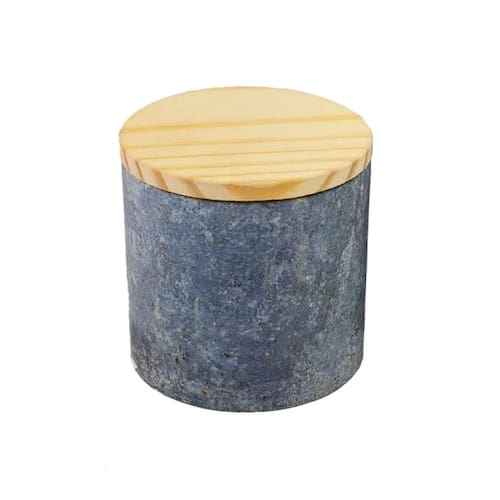 Pote em Pedra Sabão Tampa Madeira Guardar Armazenar 8x8cm