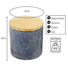 Pote em Pedra Sabão Tampa Madeira Guardar Armazenar 8x8cm