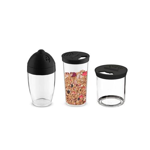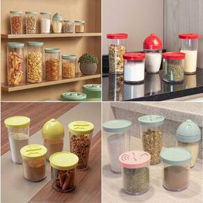 Kit de potes farinheiro são porta mantimentos básicos e funcionais em qualquer cozinha. Ideais para guardar grãos e temperos. Os potes são produzido em poliestireno, material altamente resistente, possuindo design robusto e moderno que vai dar um toque especial à sua mesa. Alta transparência, 100% reciclável, atóxico e livre de Bisfenol A (BPA Free).