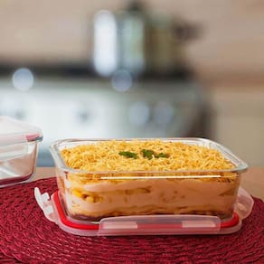 A tigela hermética da Casambiente possui cerca de 7cm de altura, 17cm de largura, 22cm de comprimento, com capacidade de 1500ml de capacidade e é feito em vidro borossilicato para que seja mais resistente ao calor e a elementos químicos, possui também tampa com borracha para vedação e travas para que possa armazenar seus alimentos e evitar ações externas. O refratário é seguro em forno, lava louça, micro-ondas e freezer. Não retém cheiros e é extremamente fácil de limpar e guardar.