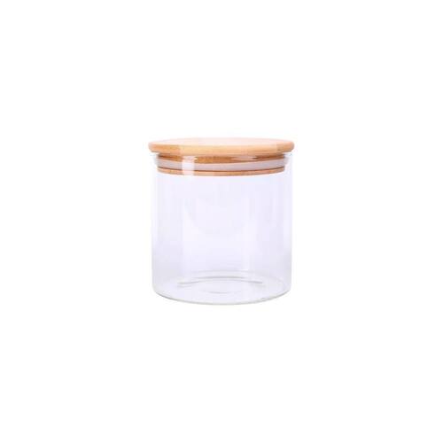Pote Hermético Para Alimentos Condimentos Temperos Pequeno 500ML Tampa de Madeira Bambu Pote Hermético de Vidro com Tampa de Bambu: Conservação Elegante e Eficiente para seus Alimentos