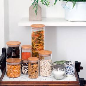 - Ideal para armazenar e organizar, os potes herméticos são mais práticos e seguros; - O pote hermético de 650ml, armazena alimentos secos e até mesmo pequenos objetos, auxiliando na organização de diversos ambientes da casa; - Com fechamento hermético e corpo incolor, garante a conservação e identificação rápida do conteúdo interno; - Confeccionado em vidro Borossilicato e tampa em Bambu; - O recipiente não retém cheiro e garante vedação absoluta; - Restrições de uso: Micro-ondas: Não - Lava Louças: Não; - Lave o pote de vidro com água e detergente neutro antes de usar;