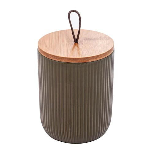 O pote de cerâmica da Lyor, possui 12,5cm de altura e 10cm de diâmetro na cor verde. Possui uma tampa em bambu, com vedação hermética em silicone um puxador em corda. A cerâmica é um ótimo material para potes, já que ele não é reativo, o que evita com que o pote absorva odores e sabores de seus alimentos e especiarias armazenados dentro do pote de cerâmica. O potiche em cerâmica é ideal para guardar especiarias, bolachas e biscoitos, açúcar, café, sal e muito mais. O pote de cerâmica, também é uma peça ideal para decoração, já que se trata de um produto acetinado, com um design da moda com filetes, e além de ser uma peça decorativa você pode utilizar para guardar chaves, moedas, remédios e muitas outras coisas que acabam ficando em cima do seu aparador ou estante. O pote de cerâmica com tampa de bambu levará organização e beleza para seu lar