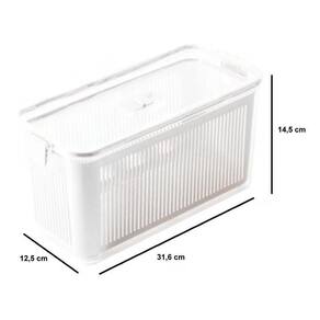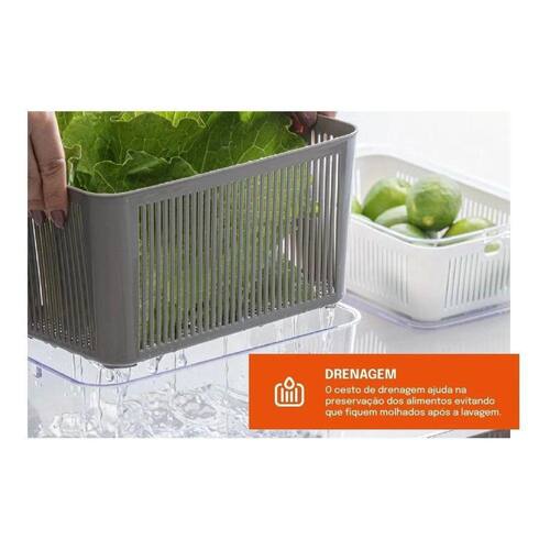 Pote hermético slim com cesto e tampa com travas 4.225 ml cinza paramountPote slim multiuso 4.225 ml cinza paramountOrganize seus alimentos de forma prática e eleganteO pote slim hermético separador de água e trava 4.225 ml da paramount é ótimo para manter os alimentos organizados na despensa ou geladeira.Os potes possuem cestos de drenagem individual para evitar o acúmulo de água nos alimentos, possuem fechamento com borracha e travas nas laterais para garantir o fechamento hermético de seu pote e além de tudo isso, possui a mais nova válvula de umidade paramount plásticos.As tampas possuem ótima vedação, que mantém o recipiente fechado hermeticamente, desta forma é possível manter todos os tipos de alimentos por muito mais tempo. Seu design foi pensado para promover frescor prolongado aos alimento, mantendo assim uma rotina sem desperdícios.Podem ser utilizados para uma fácil organização dos alimentos, otimizando todo o espaço disponívelOs potes são transparentes, deixando tudo a vista e fácil de localizar.São ideias para: frutas, legumes, saladas, queijos e muitoEspecificações:- Marca: Paramount- Modelo: Slim- Composição: Poliestireno Cristal- Dimensões: Comprimento x Largura x Altura: 31.6 cm x 14.5 cm x 12.5 cm - Cor: Cinza