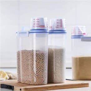 Especificações: - Material: Plástico PP e Silicone - Medida: 29cm x 15cm x 8,5cm - Capacidade: 02 Kilos - Hermético: Sim - Tampa com Copo Medidor - Livre de BPA - Peso: 226 gramas - Cor: Transparente, Branca e Azul ===================================== Devido à diferença entre monitores e iluminação diferentes, pode haver variação na tonalidade apresentada no anúncio. Medidas muito aproximadas. Marca: Não Informado