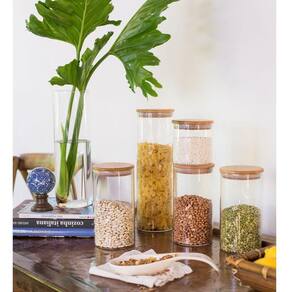 A tampa de bambu é selada para suportar umidade. O anel de silicone na tampa garante uma vedação total do pote - conservando os alimentos por muito mais tempo.Seu corpo de vidro borossilicato é bastante resistente, e a tampa de bambu natural evita a proliferação de bactérias.Não é só de comida que vive esse pote: cabe pisca-pisca, pregadores de roupa, flores secas, fios e o que mais você quiser guardar. sua tampa lisa de bambu é fácil de limpar e otimiza o espaço, além de ficar uma graça na cozinha ;)Funcional e bonito, esse potinho transita muito bem entre os diferentes cômodos da casa, espalhando seu charme por onde quer que vá - quarto, banheiro, cozinha, sala, escritório ou lavanderia, você que manda.