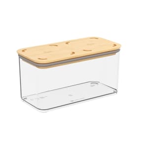 Transforme sua rotina com o Pote Hermético da Linha Modo Coza! Com vedação de alta qualidade, esse pote de 1,3L mantém seus alimentos frescos e saborosos por mais tempo, reduzindo desperdícios. Seu design compacto de 9,8 x 19,7 x 10 cm é empilhável e modular, aproveitando ao máximo o espaço na despensa ou armário. A transparência facilita a visualização, permitindo que você encontre o que precisa rapidamente. Com sistema de encaixes exclusivo, o Pote é seguro para empilhar e transportar sem riscos de derramamentos. A tampa em bambu com acabamento em verniz protege contra mofos e fungos. Feito de poliestireno (PS) resistente e durável, é 100% livre de BPA e reciclável, garantindo praticidade, elegância e sustentabilidade à sua cozinha.