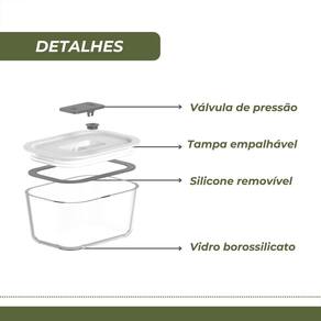 Capacidade Ideal: Com 2,400l, é perfeito para armazenar pequenas porções de alimentos, como molhos, temperos, e sobras de refeições. Sistema Hermético Avançado: A tampa com válvula de ar cria um ambiente selado que preserva a frescura e evita a entrada de umidade e odores. Válvula de Segurança: O pote só abre e fecha quando a válvula está aberta, garantindo segurança e vedação total. Material de Alta Qualidade: Feito de vidro resistente, é seguro para uso alimentar e não absorve odores ou manchas. Design Transparente: Permite visualizar facilmente o conteúdo, facilitando a identificação dos alimentos armazenados. Fácil de Limpar: Tanto o vidro quanto a tampa são laváveis na máquina de lavar louças, proporcionando praticidade no dia a dia. Benefícios: