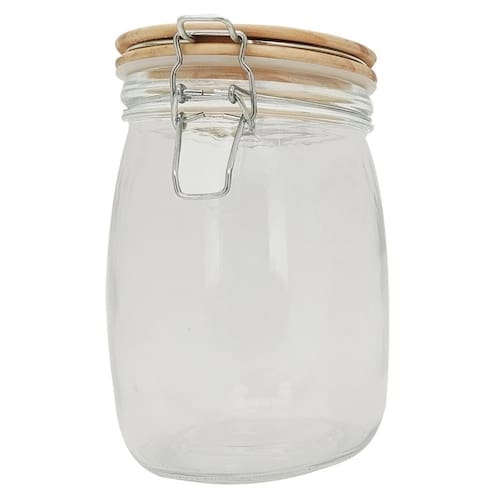 Pote Hermetico de Vidro Mimo Style com Tampa de Bambu 1 Litro – Praticidade e Elegância para Sua Cozinha