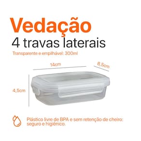 Seja muito bem-vindo à Multitudo Casa, onde cada detalhe da sua cozinha ganha mais praticidade, organização e estilo. Se você busca soluções inteligentes para armazenar alimentos com segurança e economia de espaço, está no lugar certo. Apresentamos o Pote Baixo com Travas Laterais 300ml Transparente — compacto, versátil e perfeito para o dia a dia. Você já teve dificuldades em armazenar pequenas porções de alimentos, molhos ou snacks e acabou usando potes grandes demais ou mal vedados? Isso é mais comum do que parece. O desperdício de espaço e a má conservação dos alimentos podem atrapalhar sua rotina. Com nosso pote baixo com travas, você armazena com total segurança, evita vazamentos e ainda ganha mais espaço nos armários e na geladeira. Aproveite agora e leve mais funcionalidade para sua cozinha com um produto prático, durável e eficiente. Clientes que já utilizam destacam a facilidade de uso e a vedação segura, ideal para levar pequenos lanches, organizar temperos ou armazenar sobras com total higiene. Muitos relatam que passaram a evitar o desperdício de comida e a manter tudo mais acessível e visualmente limpo. Tamanho compacto e funcional: 14cm de comprimento, 8,5cm de largura e 4,5cm de altura Capacidade de 300ml, ideal para pequenas porções Vedação hermética que conserva melhor e evita odores Tampa com travas laterais seguras e resistentes Material transparente e durável, livre de BPA Design empilhável que economiza espaço E você ainda conta com 6 meses de garantia contra defeitos de fabricação. Segurança e tranquilidade para sua compra. Não perca a chance de transformar sua organização diária com um pote prático, compacto e eficaz. Estoque limitado. Garanta o seu agora mesmo e experimente a diferença na sua cozinha.
