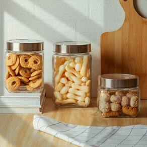 Com tamanhos diversos, os potes são ideais para armazenar desde porções maiores de mantimentos, como grãos, massas e arroz, como quantidades menores como biscoitos e bolachas.