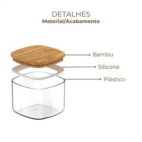 A tampa de bambu não só traz sofisticação para o ambiente, como também é uma opção sustentável, já que o bambu é um material 100% renovável. Além disso, o pote conta com vedação hermética, que bloqueia a entrada de ar e mantém os alimentos frescos e saborosos por mais tempo.