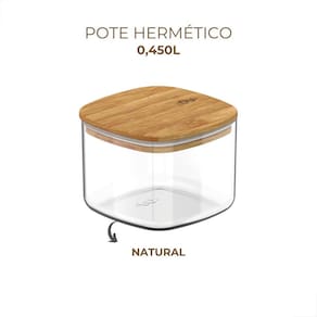 - O Pote Hermético Organizador De Mantimentos Natural 0,45L possui capacidade para 0,45 litros.