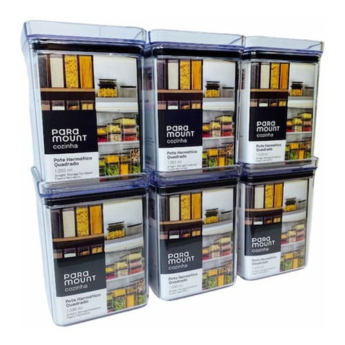 Preservação da Qualidade: Vedação hermética para alimentos sempre frescos. Organização Eficiente: Mantenha sua despensa em ordem de forma prática. Kit com 6 Unidades: Perfeito para diversas necessidades de armazenamento.