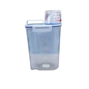 Capacidade: 2kg - ideal para grãos, farinhas, condimentos, cereais e até líquidos como água ou sucos. Material: plástico PP de alta qualidade, livre de substâncias tóxicas, resistente a altas temperaturas e durável. Tampa hermética com vedação em borracha azul para proteger da umidade, poeira e até pragas. Transparente: visualização rápida do conteúdo e controle de abastecimento sem abrir. Copo medidor integrado com marcações claras 1 - 3/4 - 1/2 - 1/4 - 50ml - 100ml - 150ml - 180ml , rosqueável sobre o bico de despejo. Alça ergonômica que facilita o manuseio e transporte. Dimensões: Alt. 29 cm Larg. 8,5 cm Comp. 15 cm Cor: Transparente, Branca e Azul; Peso: aproximadamente 226 g