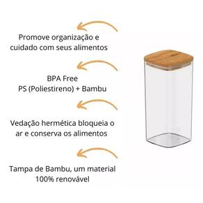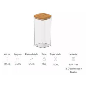 PHB905 O Pote Hermético Keep 340ml garante organização e cuidado para os seus temperos, trazendo mais tranquilidade e bem-estar para a sua rotina. A tampa de bambu promove a sustentabilidade de um material 100% renovável, e traz sofisticação para decorar a sua casa. Seu design modular promove a harmonia do ambiente. A vedação hermética bloqueia a entrada de ar e conserva os alimentos por mais tempo. Produzido em material resistente, o organizador garante durabilidade, praticidade e fácil higienização. Eleve o nível da organização com a Linha Keep e guarde o que há de melhor em cada momento Marca: Não Informado Ean: 7794153744241