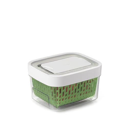 A linha Greensaver foi especialmente desenvolvida visando oferecer o que há de melhor para o armazenamento de alimentos. Tratam-se de potes produzidos em plástico livre de BPA e com alta resistência a odores e quebras, além de cestos que impedem o contato do alimento com a água que se desprende com o tempo e promove o fluxo de ar no interior do pote. Toda a linha possuí na tampa um incrível filtro de carvão ativado feito de casca de coco, material 100% natural e não tóxicos, que absorve gases retardando o processo de envelhecimento e mantendo os alimentos frescos por mais tempo. Fabricado pela marca americana Oxo reconhecida mundialmente por buscar conceito de design inovador e qualidade, oferecendo produtos que atendam as necessidades de seus consumidores.