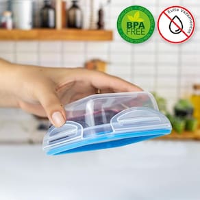 Feito em plástico transparente atóxico e livre de BPA, o pote é seguro para uso no micro-ondas, freezer e lava-louças, o que facilita o seu dia a dia.