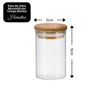 Pote Hermético Porta Condimentos e Temperos em Vidro Borossilicato com Tampa de Bambu – 110ml