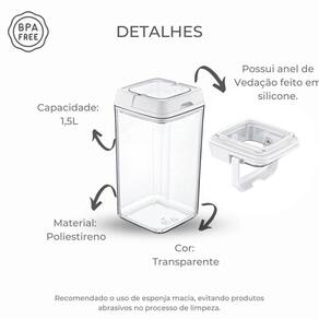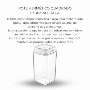 Pote Hermetico Quadrado 1,5L C/Tampa Alça P/Fechamento Nobre - Pote Hermético