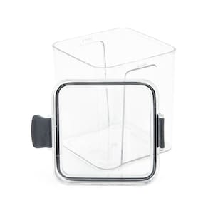 Pote Hermético Quadrado Transparente com Trata 1L Preto Organização com estilo, pote com vedação que isola bem e mantem o sabor, aroma e textura dos alimentos por muito mais tempo, possui vedação com anel de silicone e 2 travas laterais que dão um reforço maior, pode ser usando para armazenar alimentos secos como grãos, temperos, biscoitos como também conservas, molhos etc., possui tampa que permite empilhamento, deixando seu armário mais organizando aproveitando cada espaço.